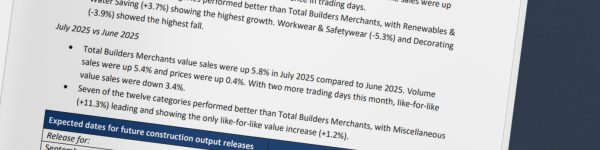 The latest Builders Merchant Building Index (BMBI) report, published in September, shows builders’ merchants’ total value sales in July 2025 were virtually flat (+0.1%) compared to July 2024. Year-on-year volumes… Read more