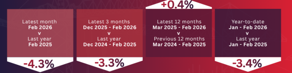 The Office for National Statistics published estimates of Construction Output for February 2026 this morning. Main points: • Total construction output is estimated to have fallen by 2.0% in the… Read more