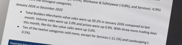 The latest Builders Merchant Building Index (BMBI) report reveals builders’ merchants’ like-for-like value sales for Q4 2025, adjusted to remove the impact of trading days, were -1.2% lower than Q4… Read more